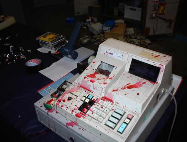 Damit war für die Produzenten allerdings noch lange nicht Feierabend, denn wir mussten den Raum, in dem wir Horsts Werkstatt eingerichtet hatten, wieder in den Ursprungszustand zurückversetzen. Da in einer der Szenen extensiv mit Kunstblut und einigen ekeligen Innereien gearbeitet wurde, waren diese Aufräumarbeiten relativ aufwändig (und bäh). Wir haben es aber tatsächlich geschafft, bis 19.00 alle Arbeiten zu erledigen.